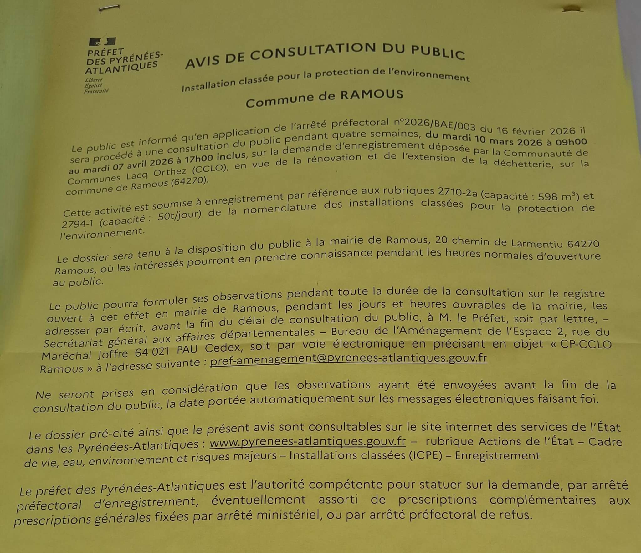 Vous disposez toutes et tous dans vos maisons des containers jaune pour les déchets recyclables et gris pour les déchets non-recyclables. La Communauté de Communes du Béarn des Gaves en assure les levées dans le cadre de l’obligation légale de gestion des déchets qui s’impose à tous. Seules les levées des containers gris sont payantes. Face à cette irresponsabilité de certains et l’atteinte à l’environnement, nous allons augmenter notre vigilance et nos surveillances quant aux dépôts sauvages et ne manquerons pas dès identifications du ou des auteurs de saisir les autorités compétentes pour application des sanctions pénales et financières prévues par les textes.